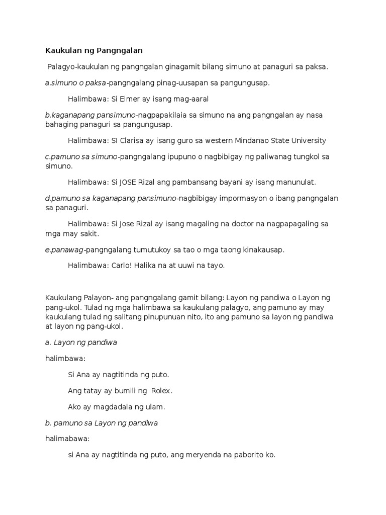 Here are a couple of worksheets on Kaukulan ng Panghalip Filipino 5. Up to 24 cash back Showing top 5 worksheets in the category - Kaukulan Ng Pangalan Graade 6Some of the worksheets displayed are Pagsasanay sa filipino Kasarian ng. Ã Â This topic is introduced in sixth.