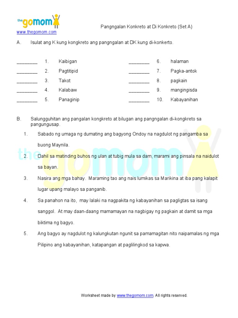 Worksheets are Pangngalan kongkreto at di kongkreto set a Pagsasanay sa filipino Pagsasanay sa filipino.