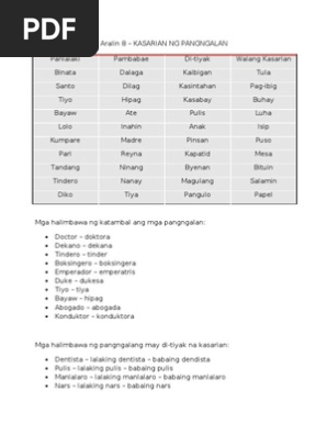 Example test kasarian ng mga pangngalan. Patinig na sinusundan ng malapitinig na y o w sa loob. Worksheets for this concept are Kailanan ng pangngalan Kasarian ng pangalan Filipino baitang 8 ikalawang markahan Filipino Work. Inuulit repeated a noun.