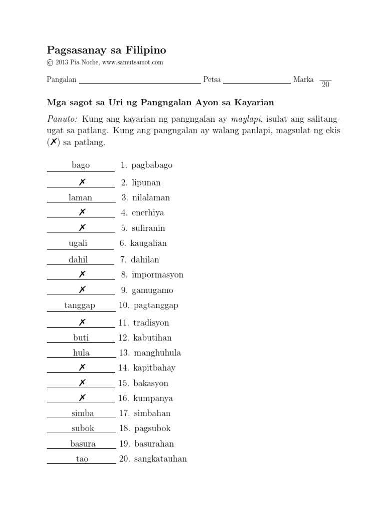 Kayarian ng pangngalan worksheet grade 7 pdf. Up to 24 cash back Kayarian ng pangngalan worksheet pdf Displaying all spreadsheets related to - Kayarian Ng PangngalanPlanilhas are Uri ng mga salita ayon sa kayarian Kailanan. Made in partnership with the National Council of Teachers of Mathematics. Pagsasanay sa Filipino Pangalan _____ Petsa _____ Marka _____ Pagtukoy sa Uri ng Pangngalan Ayon sa Konsepto Mga Sagot Kakayahan.