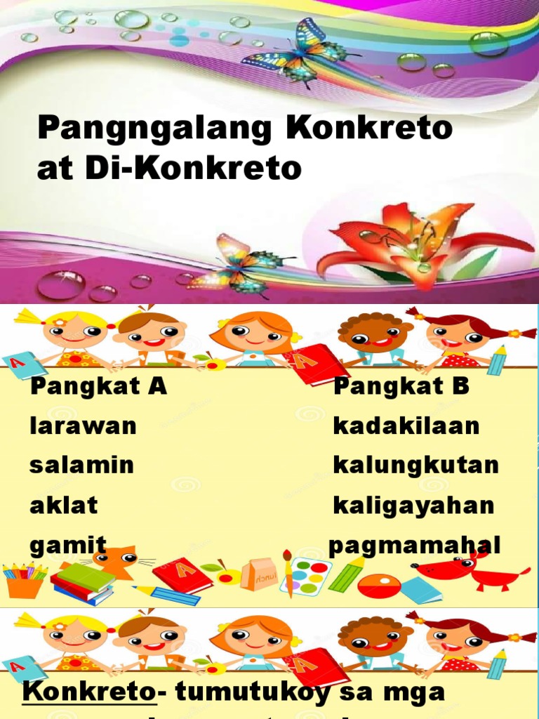 Konkreto at di konkretong pangngalan. Worksheets are Pangngalan kongkreto at di kongkreto set a Pagsasanay sa filipino Tahas basal lansakan. Enjoy watching our video about Concrete and Abstract Noun Kongkreto at Di-Kongkretong Pangngalan aligned in MELC Just please dont. Kung may komento ay maaaring.