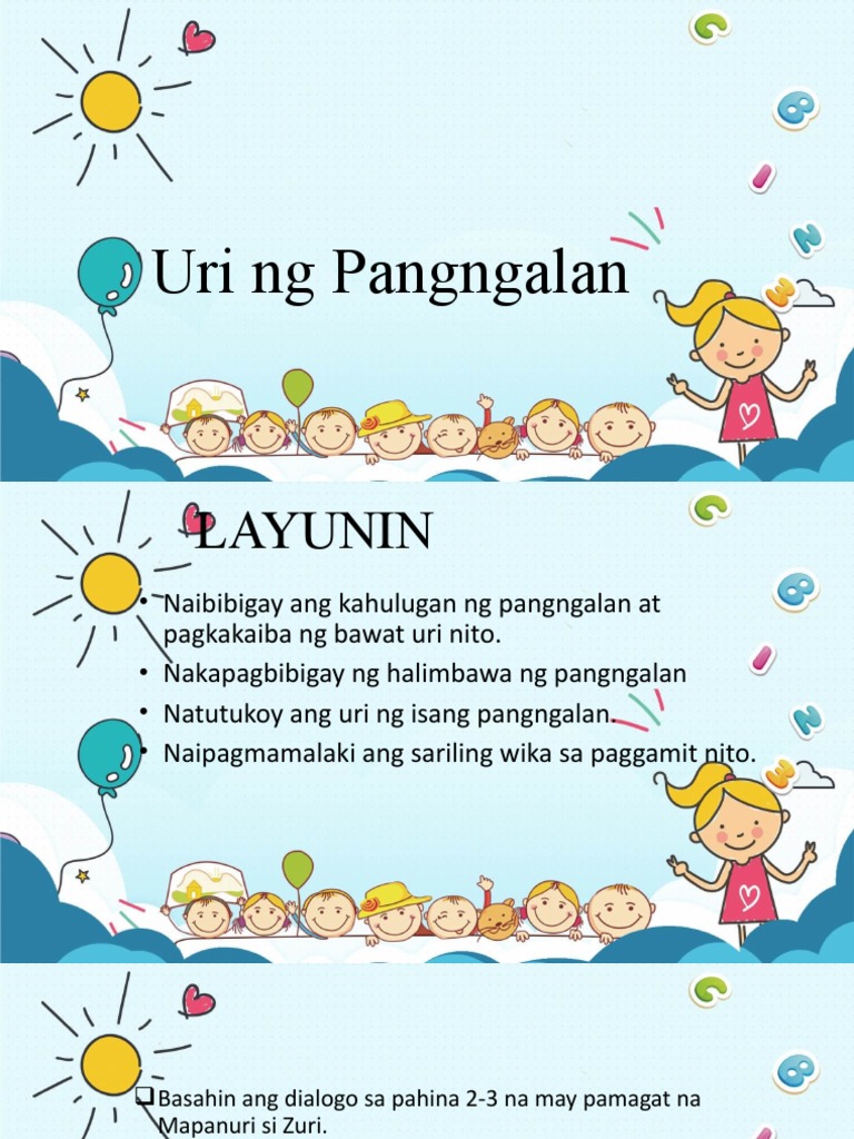 URI NG PANGNGALAN Narito ang kahulugan at mga halimbawa ng dalawang uri ng pangngalan ang pangngalang pantangi at pangngalang pambalana. Ang Paksang Diwa Ng Talata Ay Pagiging Maasikaso Sa Mga. Basahin at unawain ang sumusunod na talataSagutan ang mga katanungan sa iyong sagutang papel.